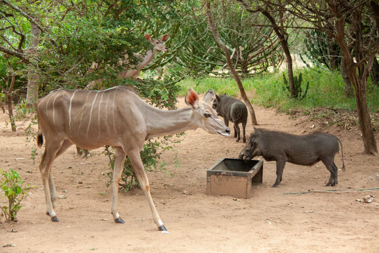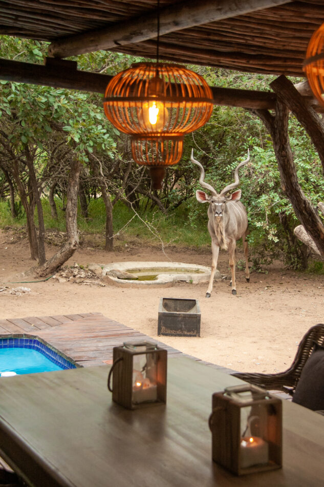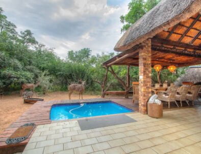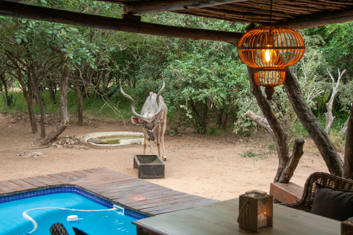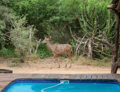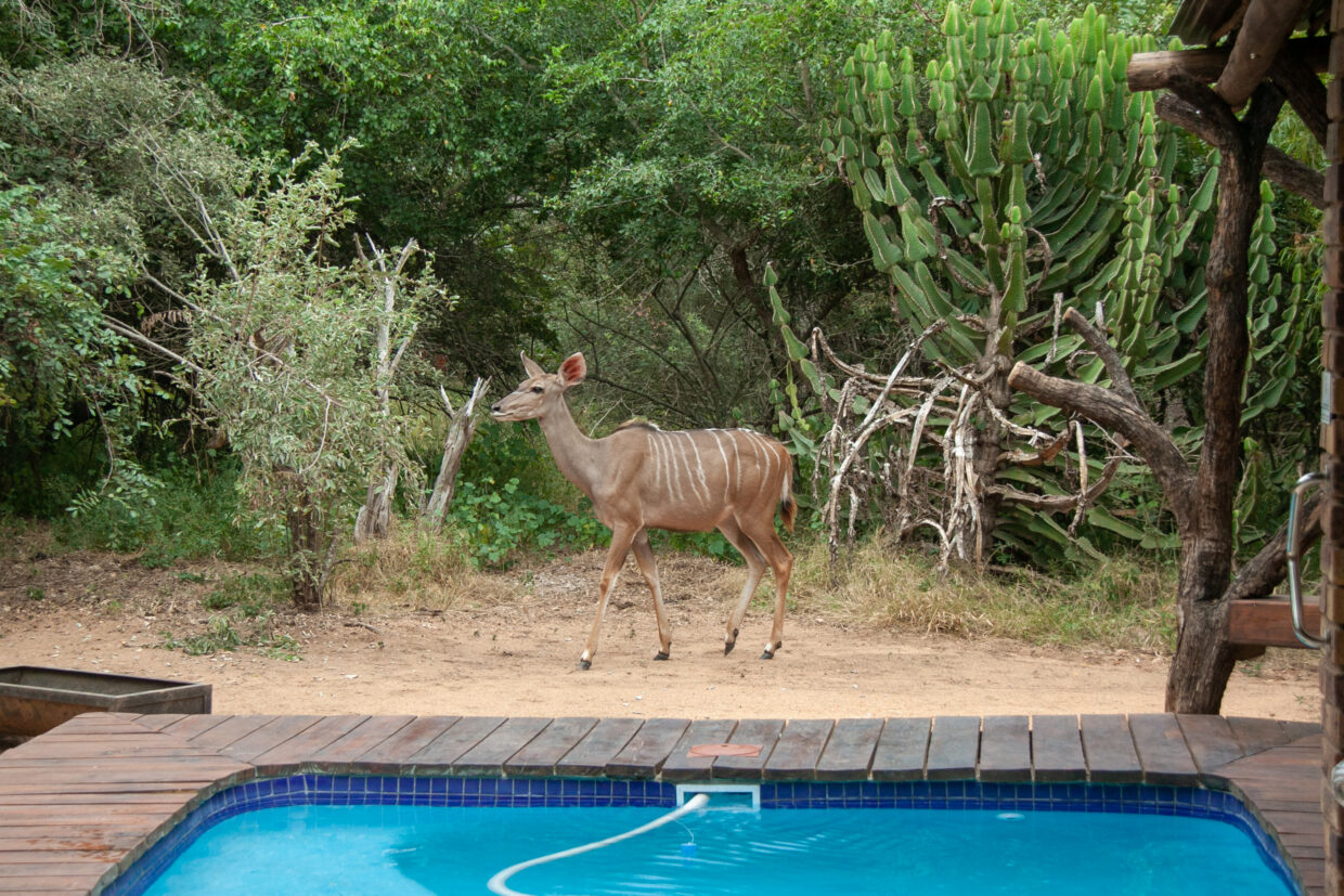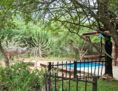 Marloth Park is not a gated community nor an estate as one would find in the cities. Both entry gates to the Park are manned by security guards and the Park is known to be relatively safe compared to other areas of our country. However, no guarantees are given in this regard and guests are required to familiarise themselves with the Safety Guidelines that will be shared by the hosts on confirmation of a reservation. The property is not fenced nor gated, wildlife roam freely on the property – we remind you that we’re in their space and not the other way around and therefore request that you respect that. Lastly, bear in mind that the house is not particularly child friendly – it is small, the swimming pool is not gated nor does it have a safety net. There is also an open staircase leading to the loft area.